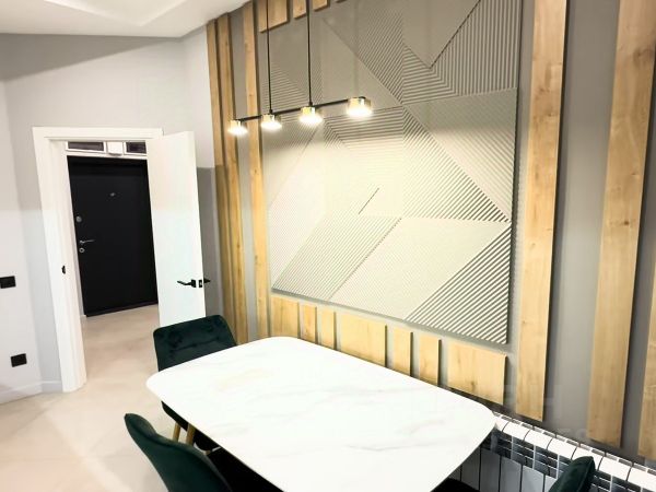 В квартире выполнен новый ремонт в светлых тонах. Хорошая планировка с комнатой правильной прямоугольной формы и просторной кухней. Санузел совмещен, установлена новая качественная сантехника. С кухни есть выход на застекленную лоджию.