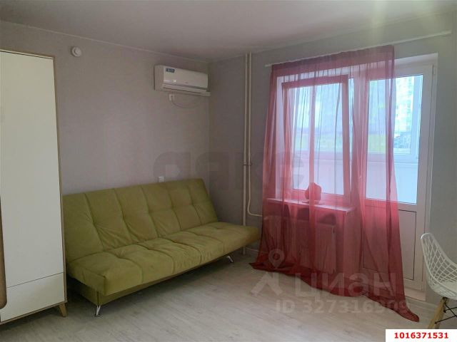 Светлая студия-квадрат с грамотным зонированием, мебелью и техникой.