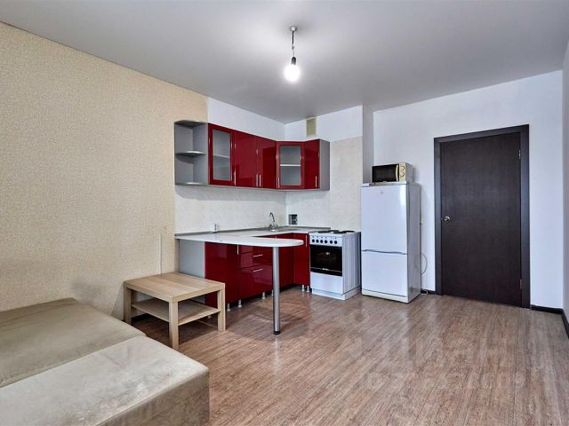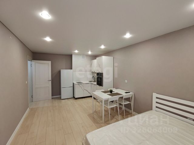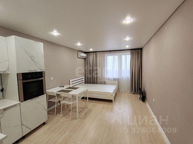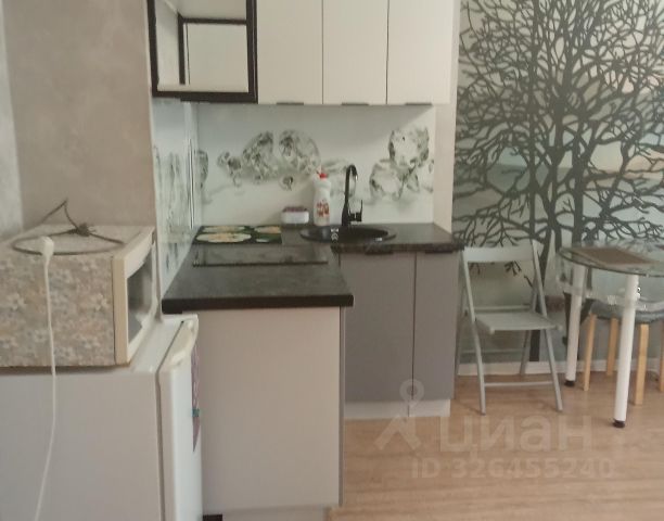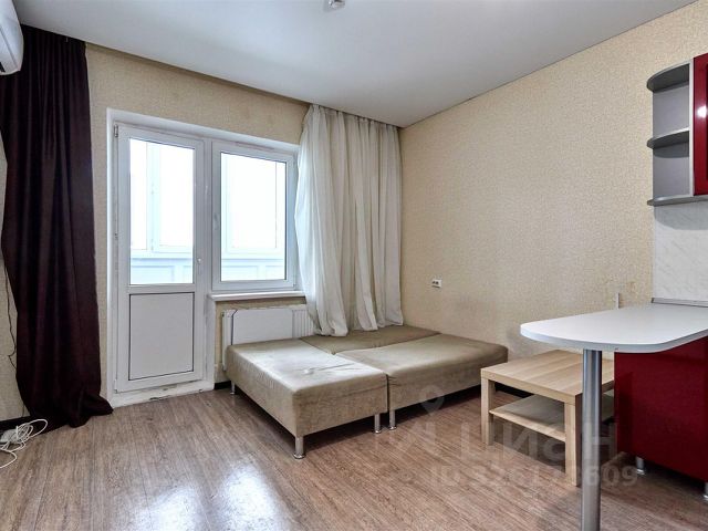 Продается студия 25,4 кв.м. В квартире косметический ремонт в современном стиле. Остается: кухонный гарнитур с встроенной техникой, холодильник, стол со стульями, стиральная машинка, кондиционер, кровать новая.