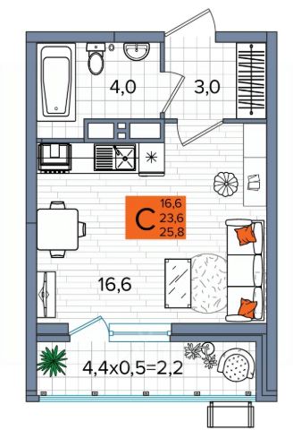 ЖК "Сармат" современный и динамично развивающийся жилой комплекс комфорт класса, расположенный в Краснодаре на улице Западный обход, где уже совсем скоро появится трамвайная линия! Комплекс построен по технологии монолит-кирпич. 2 очередь ЖК "Сармат" это два 16-этажных дома класса комфорт плюс, паркинг и кладовые помещения. Дом сдан! В ЖК есть все для комфортного проживания. Комплексная застройка полностью обеспечена необходимой инфраструктурой: действующие школы и детский сад всего в 30 метрах, магазины, подземный паркинг, кладовки и зелёные зоны для отдыха. ЖК "Сармат" это: Безопасная закрытая территория Амфитеатры Перекрестное видеонаблюдение 24/7 Безбарьерная среда Тенистые перголы Лаунж-зоны Детские и спортивные площадки для разных возрастов Витражное остекление Колясочные и велосипедные помещения Школа и детский сад всего в 30 метрах Скоростные бесшумные лифты и тестовое поле Эргономичная квартира-студия площадью 25.8 кв.м. на 2 этаже в 4-м подъезде - это оптимальный выбор для тех, кто ценит уют, качество и современный комфорт.