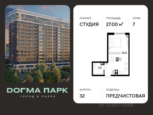 В продаже квартира-студия от застройщика! Мкр. "ДОГМА ПАРК" г. Краснодар, Литер 34 Срок сдачи: 2 кв. 2027, общей площадью 19.30 кв.м., на 5 этаже. ДОГМА ПАРК-это новый микрорайон, сочетающий в себе стильную архитектуру современного города, и настоящий зеленый оазис, который расположится прямо во дворе. Первая очередь проекта расположена в непосредственной близости от собственного ЭКО-парка. • Собственный парк 7,3 га • Благоустройство всего МКР 5,5 Га • Безбарьерная среда • Дизайнерские лифтовые холлы • Быстрые бесшумные лифты • Подземный паркинг и кладовые • Зарядные устройства для электромобилей • Панорамные виды из квартир с витражным остеклением • Просторные дворы • Прогулочные пешеходные аллеи • Велодорожка • Воркаут-зоны • 3 школы и 5 детских садов • Современные детские площадки • Баскетбольная и универсальная спортивные площадки • Медицинская клиника • Фитнес-центр с бассейном • Торгово-развлекательный центр • Охрана на территории микрорайона Приобрести квартиру можно одним из способов: -субсидированная семейная ипотека 4,5 % на весь срок -рассрочка до конца строительства -оплата наличными -дистанционная покупка Позвоните сейчас и забронируйте квартиру со скидкой!