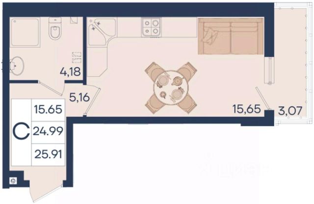 Студия 22,56 м², на 6 этаже в жилом комплексе "Дом 101". ЖК Дом 101 - это уникальное пространство на территории 101 га. Парк 20 га с спортивными площадками и амфитеатром. Школа на 1725 мест и пять детских садов. Благоустроенные дворовые территории с детскими площадками и зонами отдыха создают комфортную среду для семей. 1470