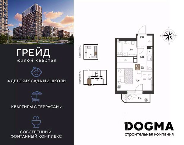 В продаже квартира-студия от застройщика! ЖК GRADE г. Краснодар, Литер 13 Срок сдачи: 2 кв. 2028, общей площадью 20.7 кв.м., на 6 этаже. GRADE от DOGMA: квартал бизнес-класса. Никогда неоклассика не была представлена в краснодарской архитектуре с таким характером. Пока не появился GRADE, неоклассический квартал, объединяющий строгие формы и величие с прогрессивными технологиями и лаконичностью современного дизайна. Жить в GRADE — значит чувствовать статус, наслаждаться свободой и управлять своим временем. Квартал с переменной этажностью 9, 16 и 18 этажей предлагает полную инфраструктуру для жизни: 4 детских сада, 2 школы, поликлиника и ФОК расположены в шаговой доступности. Ваши привилегии в GRADE: Архитектура в стиле неоклассицизм. Гранд-лобби с панорамными окнами, мягкой мебелью и выдержанной палитрой. Закрытый клуб с консьерж-сервисом: Детский клуб; Кинотеатр на 20 мест; Фитнес-рум. Благоустройство: Парк с фонтаном и амфитеатром, эко-площадки, зоны отдыха, спортивные площадки. Коммерция на первых этажах с площадками для бизнеса. Технологии "Умный дом": Управление через смартфон; Бесключевой доступ по BLE-технологии; Круглосуточное видеонаблюдение; Бесшовный Wi-Fi по всей территории; Интеллектуальные счетчики. Многоуровневый подземный паркинг с видеонаблюдением, прямым доступом на скоростном лифте и электрозарядками. Дополнительные удобства: Колясочные, велобоксы, кладовые помещения, скоростные лифты. Приобрести квартиру можно одним из способов: Семейная ипотека. Рассрочка. Оплата наличными. Дистанционная покупка. Позвоните сейчас и узнайте больше о возможностях приобретения квартиры бизнес-класса в ЖК GRADE!