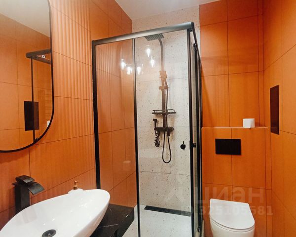 Ванная комната: Премиальная сантехника импортного производства (на гарантии). Установлена просторная душевая кабина, раковина и смарт-зеркало со встроенной подсветкой.