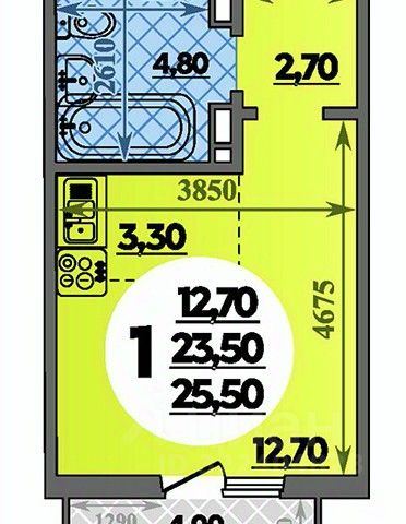 Продаётся студия в строящемся доме (Литер 7.1), срок сдачи: IV-кв. 2025, общей площадью 25.5 кв.м., на 16 этаже. ВЫГОДНОЕ РАСПОЛОЖЕНИЕ