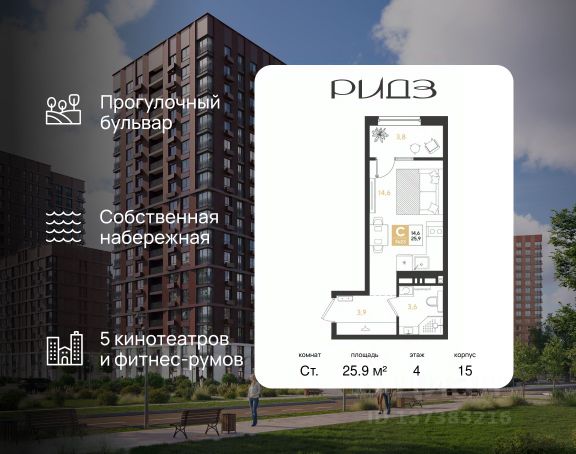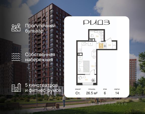 В продаже студия от застройщика! ЖК "РИДЗ" г. Краснодар, Литер 14. Срок сдачи: 3 кв. 2028, общей площадью 26.5 кв.м., на 6 этаже. Жилой квартал бизнес-класса "РИДЗ" баланс природы и урбанистики. Дома построены по монолитно-кирпичной технологии с использованием системы Куубер, что обеспечивает прочность и долговечность конструкции. Пространство, где качество жизни на высшем уровне. - Архитектурно-художественная подсветка фасадов; - Персональный клуб для резидентов; - Планировки для современного образа жизни; - Готовая отделка с уверенностью в качестве; - Лобби премиум-класса; - Система безопасного хранения; - Видеонаблюдение по всему периметру и СКУД; - Среда без границ; - Эко-лаунж; - Многофункциональные спортивные зоны; - Подземный паркинг и индивидуальные хранилища; - Образовательный кластер: школа на 1850 мест и детский сад на 350 мест; - Специальные площадки для питомцев; - Умный дом; - Кафе и рестораны. Приобрести квартиру можно одним из способов: - ипотека; - рассрочка до конца строительства; - оплата наличными; - дистанционная покупка. Позвоните сейчас и забронируйте квартиру!