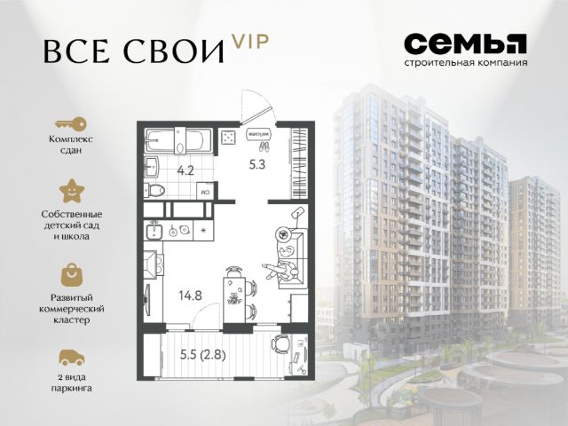 ЖК "Все свои VIP" — квартира бизнес-класса в центре Краснодара. Инфраструктура, стиль, инвестиции. Это не просто жильё — это образ жизни с высоким уровнем комфорта, статуса и выгоды. "Все свои VIP" — отличный выбор: • Локация премиум-уровня: всего 10 минут и вы у главной артерии города - улица Красная. Всё нужное рядом: торговые точки, кафе, культурные объекты, прогулочные зоны. Удобный выезд в любом направлении города. • Полностью развитая инфраструктура внутри комплекса: школа и детский сад, коммерческие галереи, закрытая территория, двор-парк, спортивная и детская площадки. • Интеллектуальные планировки: максимум полезного пространства для ваших целей. Высота потолков до 3 метров. • Панорамное остекление дарит вам впечатляющий вид на центр столицы Кубани. • Система умный дом: управление доступом во двор или в подъезд, телеметрия и домофония в вашем смартфоне. Для автолюбителей интеллектуальный шлагбаум. • Отличный вариант для инвестиций благодаря расположению и классу жилья. Выгодные условия приобретения • Возможность приобрести квартиру с максимальной выгодой — до 2 190 000 ₽. • Семейная ипотека от 2,5%. • IT ипотека - 6%. • Возможность покупки по господдержке и с использованием маткапитала. • Рассрочка с удобным графиком платежей. СК Семья входит в топ-5 среди застройщиков Краснодарского края. Надёжная компания с десятками реализованных проектов. Звоните — поможем Вам сделать правильный выбор и подобрать лучший вариант под ваш бюджет и цели.
