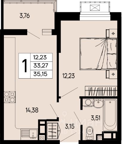 Продаётся 1-комнатная квартира в строящемся доме (Литер 3), срок сдачи: II-кв. 2027, общей площадью 38.75 кв.м., на 2 этаже.