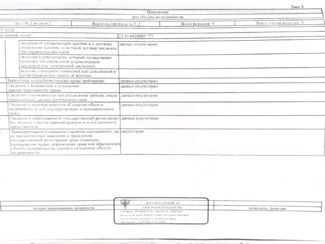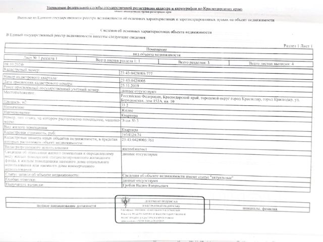 Данные получены с сайта ГИС Торги. Д-к: Рассказов Л.И. Квартира, площадь 33,2 кв.м., кадастровый номер 23:43:0428005:777. Адрес: Краснодарский край, г. Краснодар, ул. Бородинская, д. 152 А, кв. 10. Начальная цена 2 000 000 руб., задаток 2 000 руб., шаг аукциона 20 000 руб., ув. 1567