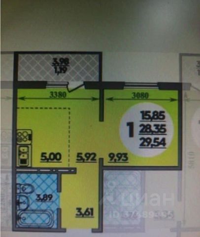 - Площадь по выписка ЕГРН 57,4 м²+ лоджия 2,2 м²=59,6 м²