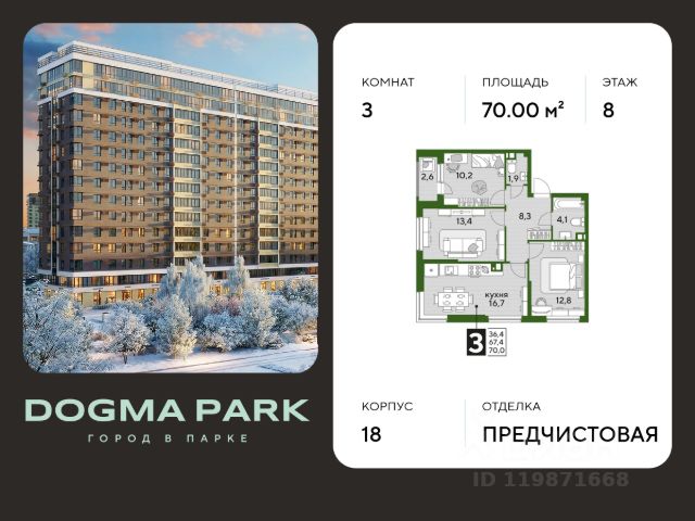 В продаже 3-комнатная квартира от застройщика! Мкр. "ДОГМА ПАРК" г. Краснодар, Литер 17 Срок сдачи: 2 кв. 2027, общей площадью 68.80 кв.м., на 6 этаже. ДОГМА ПАРК-это новый микрорайон, сочетающий в себе стильную архитектуру современного города, и настоящий зеленый оазис, который расположится прямо во дворе. Первая очередь проекта расположена в непосредственной близости от собственного ЭКО-парка. • Собственный парк 7,3 га • Благоустройство всего МКР 5,5 Га • Безбарьерная среда • Дизайнерские лифтовые холлы • Быстрые бесшумные лифты • Подземный паркинг и кладовые • Зарядные устройства для электромобилей • Панорамные виды из квартир с витражным остеклением • Просторные дворы • Прогулочные пешеходные аллеи • Велодорожка • Воркаут-зоны • 3 школы и 5 детских садов • Современные детские площадки • Баскетбольная и универсальная спортивные площадки • Медицинская клиника • Фитнес-центр с бассейном • Торгово-развлекательный центр • Охрана на территории микрорайона Приобрести квартиру можно одним из способов: -субсидированная семейная ипотека 4,5 % на весь срок -рассрочка до конца строительства -оплата наличными -дистанционная покупка Позвоните сейчас и забронируйте квартиру со скидкой! *предложение актуально для тех, кто планирует покупку за наличный расчет или по стандартным ипотечным программам.