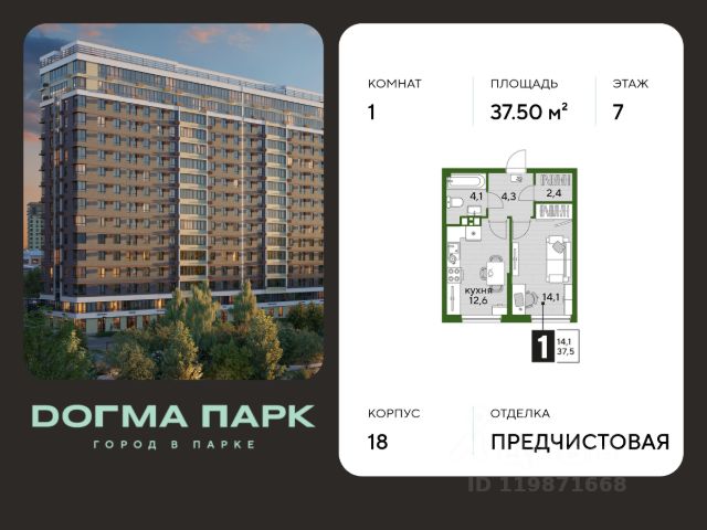 В продаже 1-комнатная квартира от застройщика! Мкр. "ДОГМА ПАРК" г. Краснодар, Литер 35 Срок сдачи: 2 кв. 2027, общей площадью 34.00 кв.м., на 10 этаже. Скидка до 25% на ограниченный пул квартир!* ДОГМА ПАРК-это новый микрорайон, сочетающий в себе стильную архитектуру современного города, и настоящий зеленый оазис, который расположится прямо во дворе. Первая очередь проекта расположена в непосредственной близости от собственного ЭКО-парка. • Собственный парк 7,3 га • Благоустройство всего МКР 5,5 Га • Безбарьерная среда • Дизайнерские лифтовые холлы • Быстрые бесшумные лифты • Подземный паркинг и кладовые • Зарядные устройства для электромобилей • Панорамные виды из квартир с витражным остеклением • Просторные дворы • Прогулочные пешеходные аллеи • Велодорожка • Воркаут-зоны • 3 школы и 5 детских садов • Современные детские площадки • Баскетбольная и универсальная спортивные площадки • Медицинская клиника • Фитнес-центр с бассейном • Торгово-развлекательный центр • Охрана на территории микрорайона Приобрести квартиру можно одним из способов: -субсидированная семейная ипотека 4,5 % на весь срок -рассрочка до конца строительства -оплата наличными -дистанционная покупка Позвоните сейчас и забронируйте квартиру со скидкой! *предложение актуально для тех, кто планирует покупку за наличный расчет или по стандартным ипотечным программам. Условия акции: Размер скидки: до 25%. Условия оплаты: 100% расчет или ипотека без субсидий. Срок действия: до 31.03.2026 г.