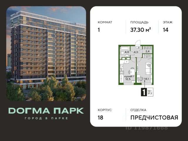 В продаже 1-комнатная квартира от застройщика! Мкр. "ДОГМА ПАРК" г. Краснодар, Литер 18 Срок сдачи: 2 кв. 2027, общей площадью 37.30 кв.м., на 14 этаже. Скидка до 25% на ограниченный пул квартир!* ДОГМА ПАРК-это новый микрорайон, сочетающий в себе стильную архитектуру современного города, и настоящий зеленый оазис, который расположится прямо во дворе. Первая очередь проекта расположена в непосредственной близости от собственного ЭКО-парка. • Собственный парк 7,3 га • Благоустройство всего МКР 5,5 Га • Безбарьерная среда • Дизайнерские лифтовые холлы • Быстрые бесшумные лифты • Подземный паркинг и кладовые • Зарядные устройства для электромобилей • Панорамные виды из квартир с витражным остеклением • Просторные дворы • Прогулочные пешеходные аллеи • Велодорожка • Воркаут-зоны • 3 школы и 5 детских садов • Современные детские площадки • Баскетбольная и универсальная спортивные площадки • Медицинская клиника • Фитнес-центр с бассейном • Торгово-развлекательный центр • Охрана на территории микрорайона Приобрести квартиру можно одним из способов: -субсидированная семейная ипотека 4,5 % на весь срок -рассрочка до конца строительства -оплата наличными -дистанционная покупка Позвоните сейчас и забронируйте квартиру со скидкой! *предложение актуально для тех, кто планирует покупку за наличный расчет или по стандартным ипотечным программам. Условия акции: Размер скидки: до 25%. Условия оплаты: 100% расчет или ипотека без субсидий. Срок действия: до 31.03.2026 г.