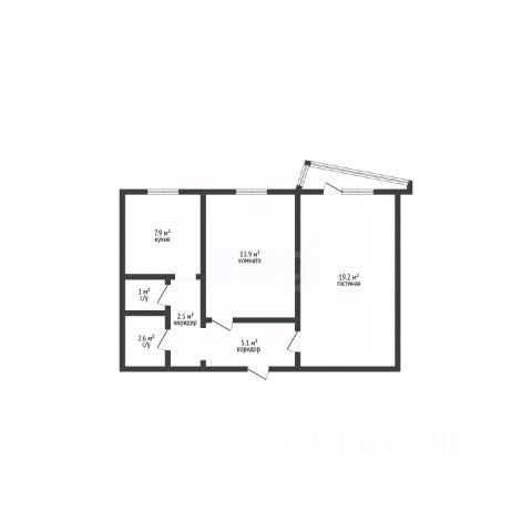 Общая площадь 31,5 кв.м.Кухня - 9 кв.м.Жилая площадь - 16 кв.м.