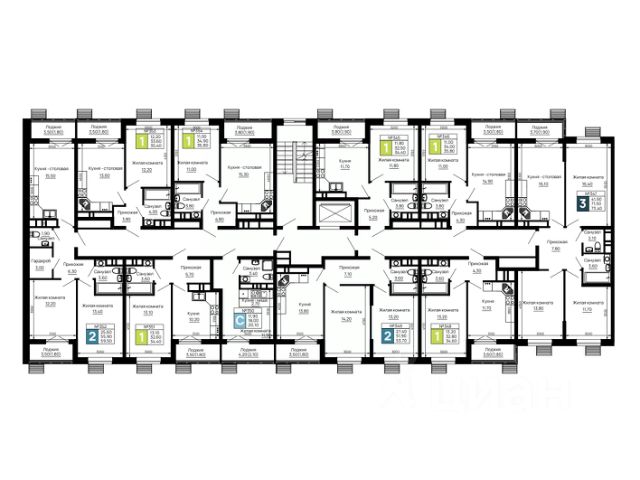 Продаётся 1-комнатная квартира в строящемся доме (Литер 3), срок сдачи: II-кв. 2027, общей площадью 46.46 кв.м., на 2 этаже.
