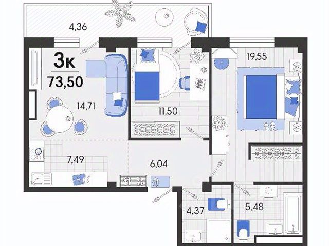 Приятный бонус - это еще одна терраса 50,4м2 в дополнение к основной,