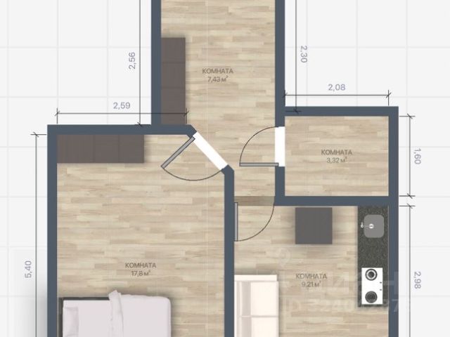 В квартире сделан ремонт от застройщика . Из мебели остается : кухонный гарнитур со встроенной техникой, диван в кухне, стол, стулья , в гостиной - кровать , тумба со шкафами под ТВ, шкаф-купе, комод , сплит-система, в спальне - шкаф , остальная техника по договоренности.