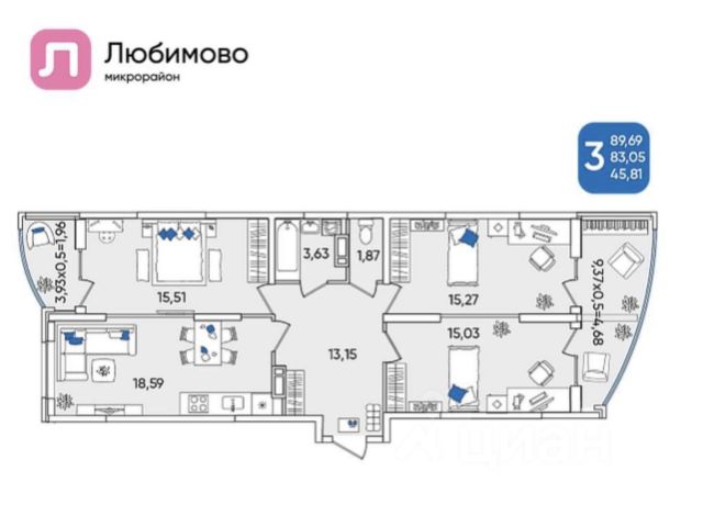 ЖК Любимово это комплекс бизнес класса. Свои детские сады, школа, новый торговый центр Любимово с кинотеатром, это комплекс для вашего комфортного проживания, зоны барбекю, спортивные и детские площадки, красивые обустроенные аллеи с фонтаном, велодорожки, открытые и многоуровневая парковка, магазины и ПВЗ, во дворах доступен wi-fi и зоны для зарядки гаджетов, площадки для выгула домашних животных. Преимущества данного района: видео-наблюдение по периметру, коньсерж-сервис, распознание лиц и управление видео домофоном через приложение, крытый паркинг во дворе, датчики движения на лестницах для экономии электроэнергии, умные счетчики, колясочные, дизайн входных групп. В 2025 году открылся большой, современный Фитнес клуб, кафе и рестораны, а так же гиперпаркет Лента.