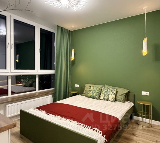 В комнате установлена сплит система Kentatsu (на площадь 21 кв.м),шкаф для хранения вещей с консолью и зеркалом, двуспальная кровать, 2 прикроватных тумбы, шторы. Шкаф для хранения вещей с консолью (может использоваться как рабочее место).
