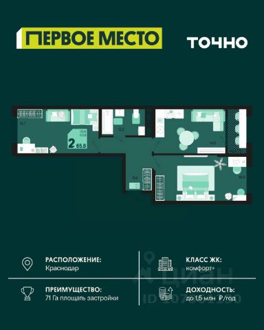Жилой комплекс "Первое место" располагается в новом районе города — Новознаменском, в Карасунском округе северо-восточной части Краснодара, и имеет выезд на трассы М4 "ДОН" и "Джубга-Сочи" в направлении Черного моря и горнолыжных курортов. В пешей доступности находятся продовольственные магазины, торговые центры, медицинские и образовательные учреждения, кафе и рестораны. До цента краснодара — 30 минут.