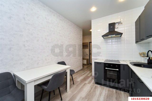 В квартире остаётся угловой шкаф в коридоре, кухня полностью (гарнитур, кожаный диван, стол, плита, духовка), диван в одной комнате.
