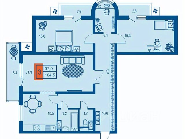 — Функциональная планировка: кухня 7,6 м², жилая площадь 25,3 м², Высота потолков 2,5 м. — изолированные комнаты.