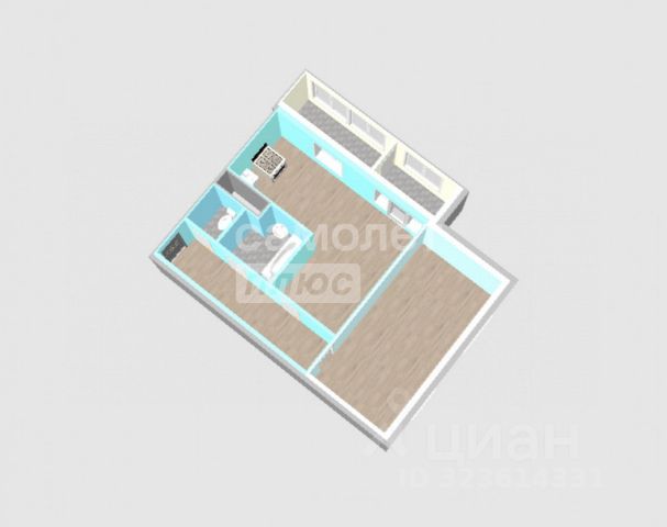 Общая площадь квартиры 41.8 кв.м., из которых комнаты 17.2 и 10 кв.м., сан. узел 3 кв.м., кухня 6 кв.м., прихожая 2,6 кв.м., кладовая 2 кв.м. + балкон 3 кв.м.