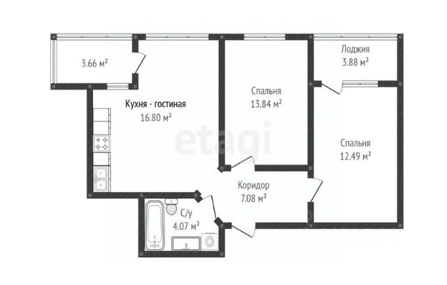 В квартире выполнен ремонт в светлых тонах. Хорошая планировка с комнатой правильной прямоугольной формы и просторной кухней. Санузел совмещен, установлена новая качественная сантехника. С кухни есть выход на застекленную лоджию.