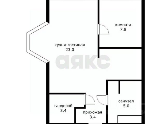 Планировка: Одна просторная изолированная комната, вместительная кухня, отдельно выделенная гардеробная зона, совмещенный санузел.