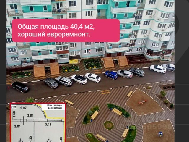 Звоните пишите договоримся покажу квартиру заранее (2 часа)!!!!Я собственник!!!Продаю свою 1-к квартиру (Евродвушку) г. Краснодар. пос. Краснодарский, д. 66/1. Квартира находится в ЖК Параллели на 11 этаже 16-ти этажного дома на закрытой территории. Лифты пассажирский и грузовой есть. C учётом доработок и объединения балкона с кухней Общая площадь 40,4 м2 Прихожая 7,5 м2 Ванная 4,1 м2 Кухня-гостиная 15,2 м2 Комната 13,6 м2 О ДОМЕ: Дом монолитно-каркасный. Обустроенный тихий подъезд. Квартира сделана под Евродвушку для себя с хорошим дорогим ремонтом и специальными коммуникациями, не сдавалась квартирантам. Полы ламинат, в ванной итальянский кафель. Потолки натяжные. Умный дом. Два смарт-телевизоры и в спальне, и в гостиной с проведенными интернет-кабелями (по договоренности). В прихожей хороший шкаф купе и мебель (по договоренности).Кухня - госттнная: ламинат, обои, кухонная плитка германия,встроенная кухня под заказ, холодильник индезит (по договоренности). Ванная комната: керамогранит в спокойных тонах, угловая ванная и стиральная машинка хот поинт индезит. Все коммуникации центральные. Все услуги жку с не высокими тарифами и исключительно по счётчикам, в т.ч. и отопление. Придомoвaя территopия закpытa и огoрожена, ухoжeна, вo дворe небoльшой cквер с зонами отдыха, детскими площадками. Парковка просторная, всем хватает места. Двор оборудован современными детскими площадками, рядом школы, детские сады, остановки общественного транспорта, чистый воздух, микрорайон Любимово, Православный храм, Торгово-развлекательный центр Любимово, магазины на любой вкус, парк, Екатерининская клиника и многое другое. Хорошая транспортная развязка в центр города и на объездную дорогу в любой конец. Квартира без обременений готова к продаже, прямая продажа.