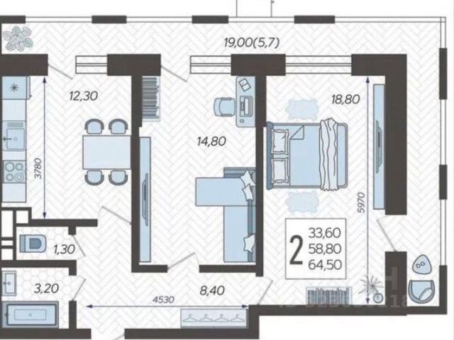 • Общая площадь: 65 м²