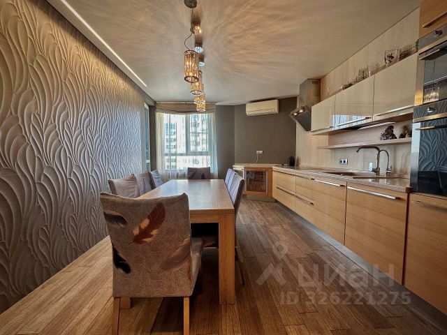 Планировка: общ. S=150 кв. м, 3 спальни, 3 санузла, столовая-зал, кухня, кабинет, гардеробная, постирочная. Дизайнерский ремонт в стиле современного минимализма на основе натуральных фактур и материалов (дерево, камень, декоративная штукатурка). Обставлена элитной мебелью от ведущих брендов Еstеtikа, Gаrdа Dсоr, Мr Dооrs, Еlfа, укомплектованный полностью встроенной бытовой техникой от Наir, Wеissgаuff, Dеlоnghi, Еlесtrоluх, а также эко-камином. В каждой комнате плазменные ТВ, в зале и спальне взрослых большие плазменные системы - телевизор 65 диагональю (более 165 см), в спальне взрослых встроенная система Sаmsung Frаmе с эффектом интерактивной картины. По всей квартире встроенная многоуровневая подсветка: подсветка парящего потолка, вертикальная система освещения коридора, подсветка полок, полов, встроенные светильники и люстры.