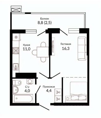 На объекте имеется перепланировка (расширение кухни за счет балкона).