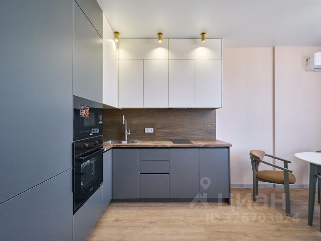 Площадь квартиры 32,3 кв.м. плюс расширение кухни за счет балкона 3 м2, качественный ремонт, теплый пол везде, флизелиновые обои, установлена кухонная мебель,духовка,варочная поверхность, вытяжка, гардеробная в комнату, ремонт и мебель в санузле,дорогая входная дверь в квартиру, металлопластиковые окна, радиаторы отопления, счётчики, выключатели, розетки, установлены сплит системы в кухне и комнате. У квартиры комфортная планировка с большой кухней-гостиной 14,7 м2.