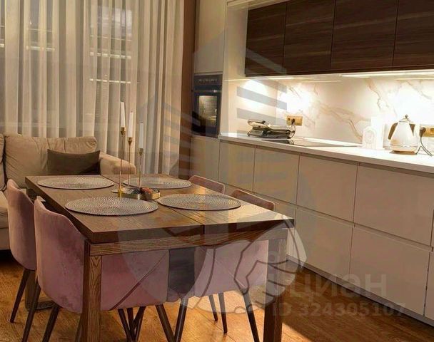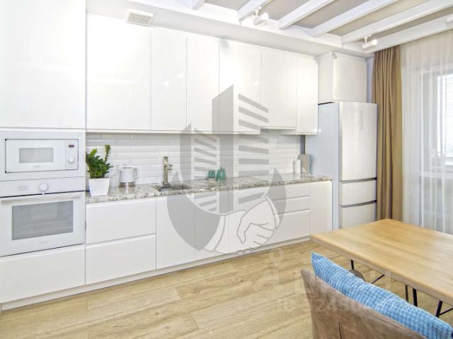 Квартира 105 кв.м., очень светлая и просторная, три спальни, все комнаты изолированы, кухня-гостиная 21 кв.м., два санузла, гардеробная. В квартире сделан качественный ремонт, кухонный гарнитур (фирма "Мария") оснащен бытовой техникой (стиральная и посудомоечная машины, встроенный двухкамерный холодильник, СВЧ, духовой шкаф).