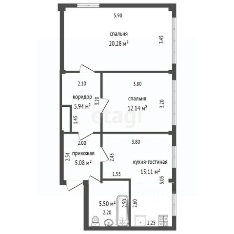 Общая площадь: 72 м²