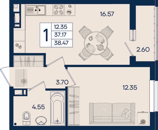 • ✓ В базе Циан 2,1 тыс. квартир в ЖК Дом 101 в Краснодаре