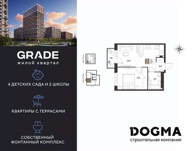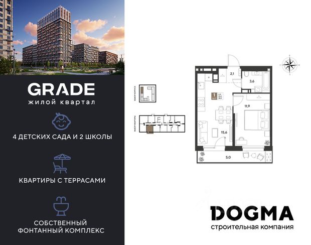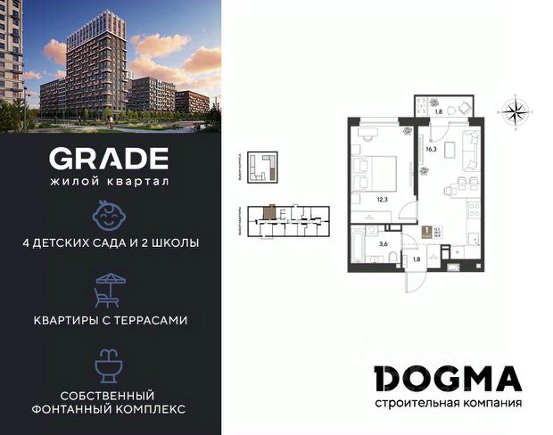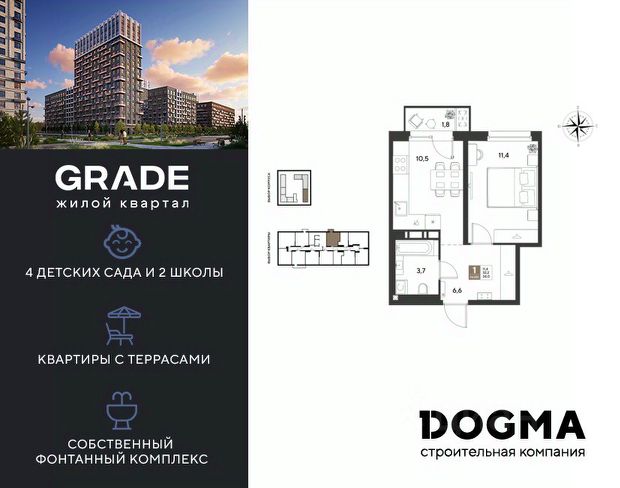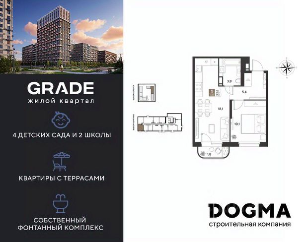 В продаже 1-комнатная квартира от застройщика! ЖК GRADE г. Краснодар, Литер 15 Срок сдачи: 4 кв. 2027, общей площадью 39.2 кв.м., на 4 этаже. GRADE от DOGMA: квартал бизнес-класса. Никогда неоклассика не была представлена в краснодарской архитектуре с таким характером. Пока не появился GRADE, неоклассический квартал, объединяющий строгие формы и величие с прогрессивными технологиями и лаконичностью современного дизайна. Жить в GRADE — значит чувствовать статус, наслаждаться свободой и управлять своим временем. Квартал с переменной этажностью 9, 16 и 18 этажей предлагает полную инфраструктуру для жизни: 4 детских сада, 2 школы, поликлиника и ФОК расположены в шаговой доступности. Ваши привилегии в GRADE: Архитектура в стиле неоклассицизм. Гранд-лобби с панорамными окнами, мягкой мебелью и выдержанной палитрой. Закрытый клуб с консьерж-сервисом: Детский клуб; Кинотеатр на 20 мест; Фитнес-рум. Благоустройство: Парк с фонтаном и амфитеатром, эко-площадки, зоны отдыха, спортивные площадки. Коммерция на первых этажах с площадками для бизнеса. Технологии "Умный дом": Управление через смартфон; Бесключевой доступ по BLE-технологии; Круглосуточное видеонаблюдение; Бесшовный Wi-Fi по всей территории; Интеллектуальные счетчики. Многоуровневый подземный паркинг с видеонаблюдением, прямым доступом на скоростном лифте и электрозарядками. Дополнительные удобства: Колясочные, велобоксы, кладовые помещения, скоростные лифты. Приобрести квартиру можно одним из способов: Семейная ипотека. Рассрочка. Оплата наличными. Дистанционная покупка. Позвоните сейчас и узнайте больше о возможностях приобретения квартиры бизнес-класса в ЖК GRADE!