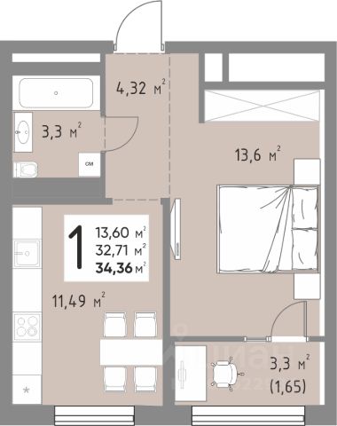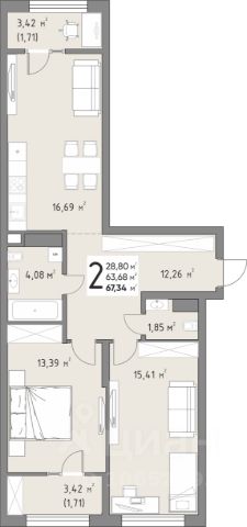 Продается 2-комнатная квартира площадью 49,44 кв.м. на 2 этаже в новом современном клубном квартале от строительной компании "КОНТИНЕНТ ГРУПП".
