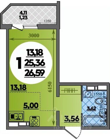 • ✅ Минимальная площадь: 26,4 м² м² (студии в наличии)