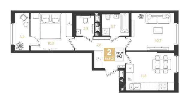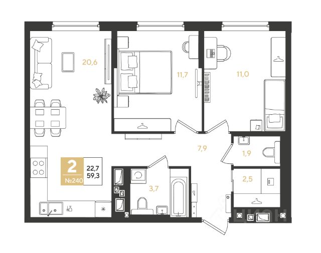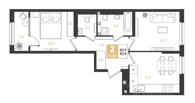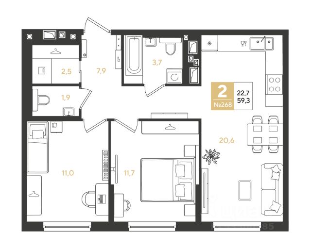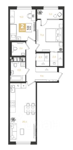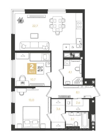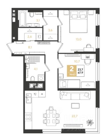 Продаётся 2-комнатная квартира в строящемся доме (Литер 2), срок сдачи: II-кв. 2028, общей площадью 67.9 кв.м., на 13 этаже. Новый жилой комплекс "Самолёт-7" от застройщика "DOGMA" расположен по адресу Краснодарский край, Город Краснодар.