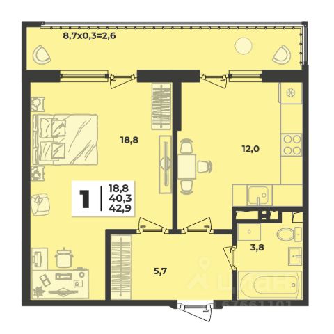 Продаётся 1-комнатная квартира в сданном доме (Литер 1.7), срок сдачи: III-кв. 2025, общей площадью 42.9 кв.м., на 2 этаже. Новый жилой комплекс "Лето" от застройщика "ГК Дарстрой" расположен по адресу город Краснодар, улица Западный Обход.