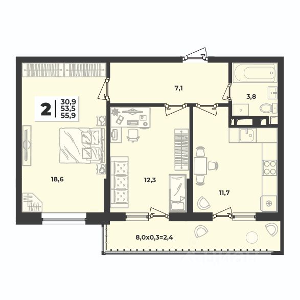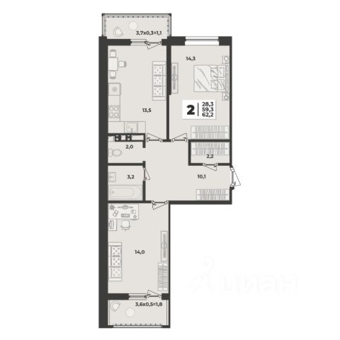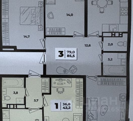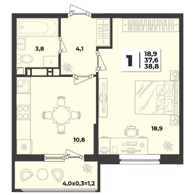Продаётся 1-комнатная квартира в строящемся доме (Литер 2.1), срок сдачи: IV-кв. 2026, общей площадью 42.9 кв.м., на 2 этаже. Новый жилой комплекс "Лето" от застройщика "ГК Дарстрой" расположен по адресу город Краснодар, улица Западный Обход.