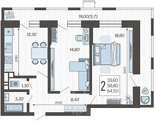 Продаётся 2-комнатная квартира в сданном доме (Литер 6), срок сдачи: III-кв. 2024, общей площадью 64.5 кв.м., на 2 этаже. Новый жилой комплекс "Небо" от застройщика "АСК" расположен по адресу город Краснодар, Ярославская улица.