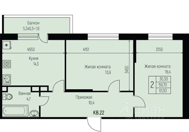 115 955 ₽/м²