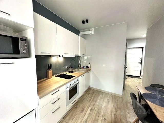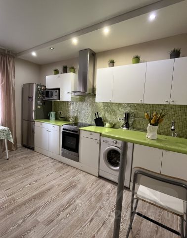 Ремонт на кухне делали в прошлом году, вся мебель и встроенная техника новая, всё это остаётся новому владельцу. Холодильник SВS LG, встроенная духовка и индукционная плита, подсветка, измельчитель отходов, система очистки воды с осмосом, посудомойка. Был балкон - объединили и сделали большую кухню