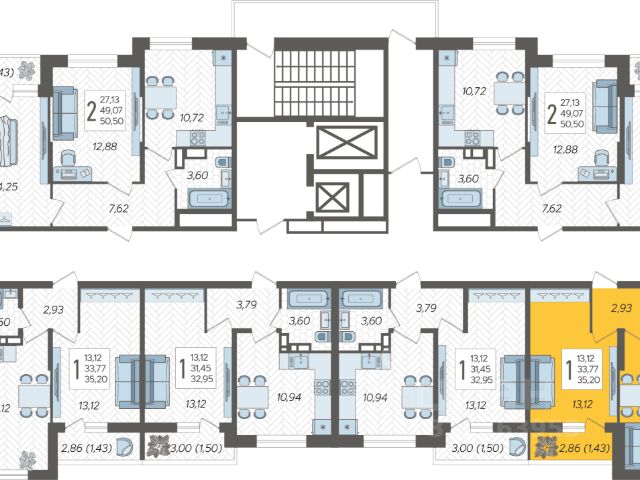- Oбщaя площaдь 50.3м2 по Выписке + 3,04 м2 лоджия