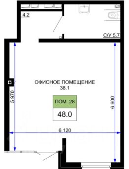 Площадь помещения составляет 22,3 м2. Вход в помещение от...