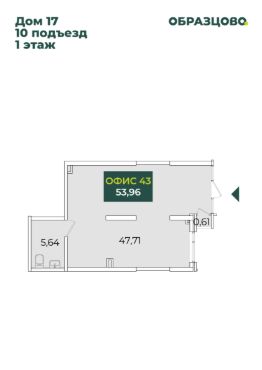 Коммерческое помещение площадью 53.96 находится на 1-м этаже нового жилого дома. Помещение в предчистовой отделке, есть возможность сделать ремон...