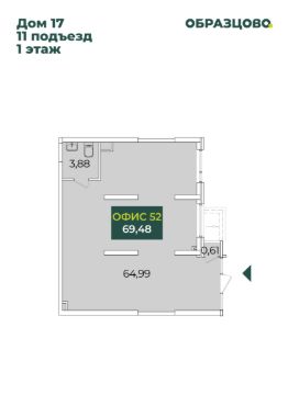 Коммерческое помещение площадью 69.48 находится на 1-м этаже нового жилого дома. Помещение в предчистовой отделке, есть возможность сделать ремон...